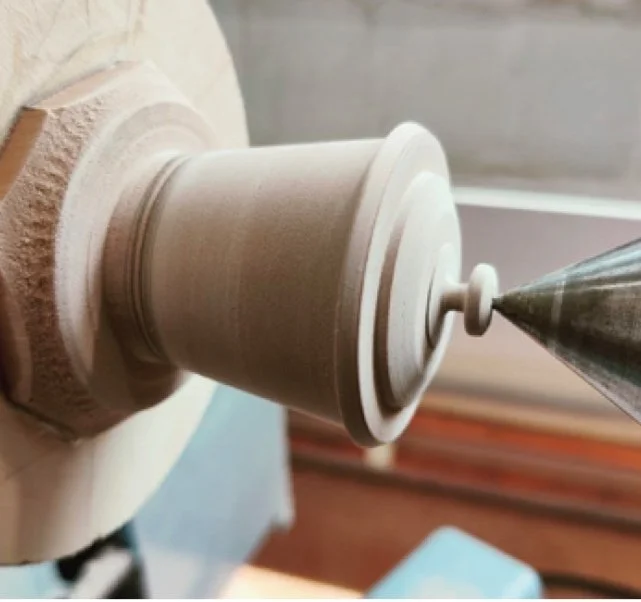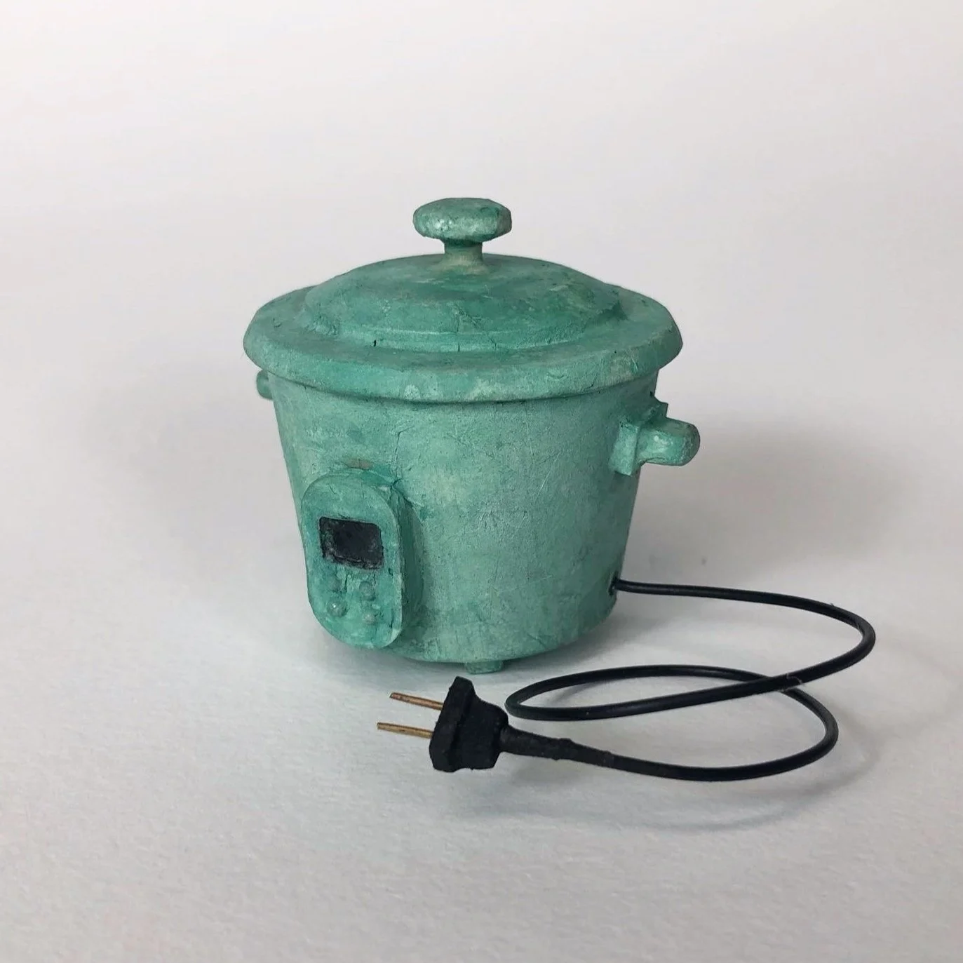 1:6 scale rice cooker hand turned in one piece out of chemiwood and textured with paper to fit the style of the film.